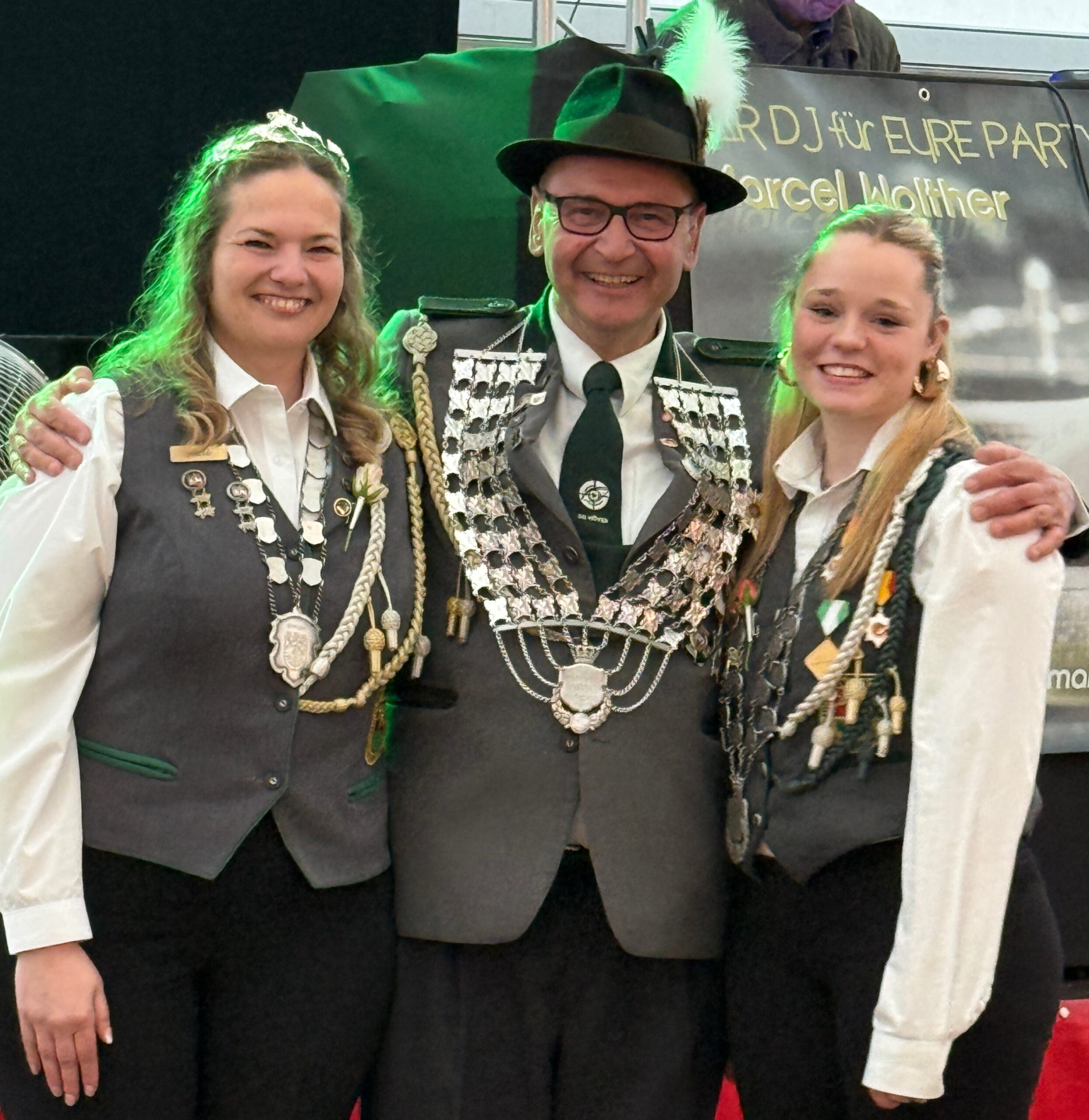 Majestäten 2025 mit der Gewinnerin der KK-Kette 2025 Margret Bock und dem Vogelkönig 2025 Wolfgang Böhm
